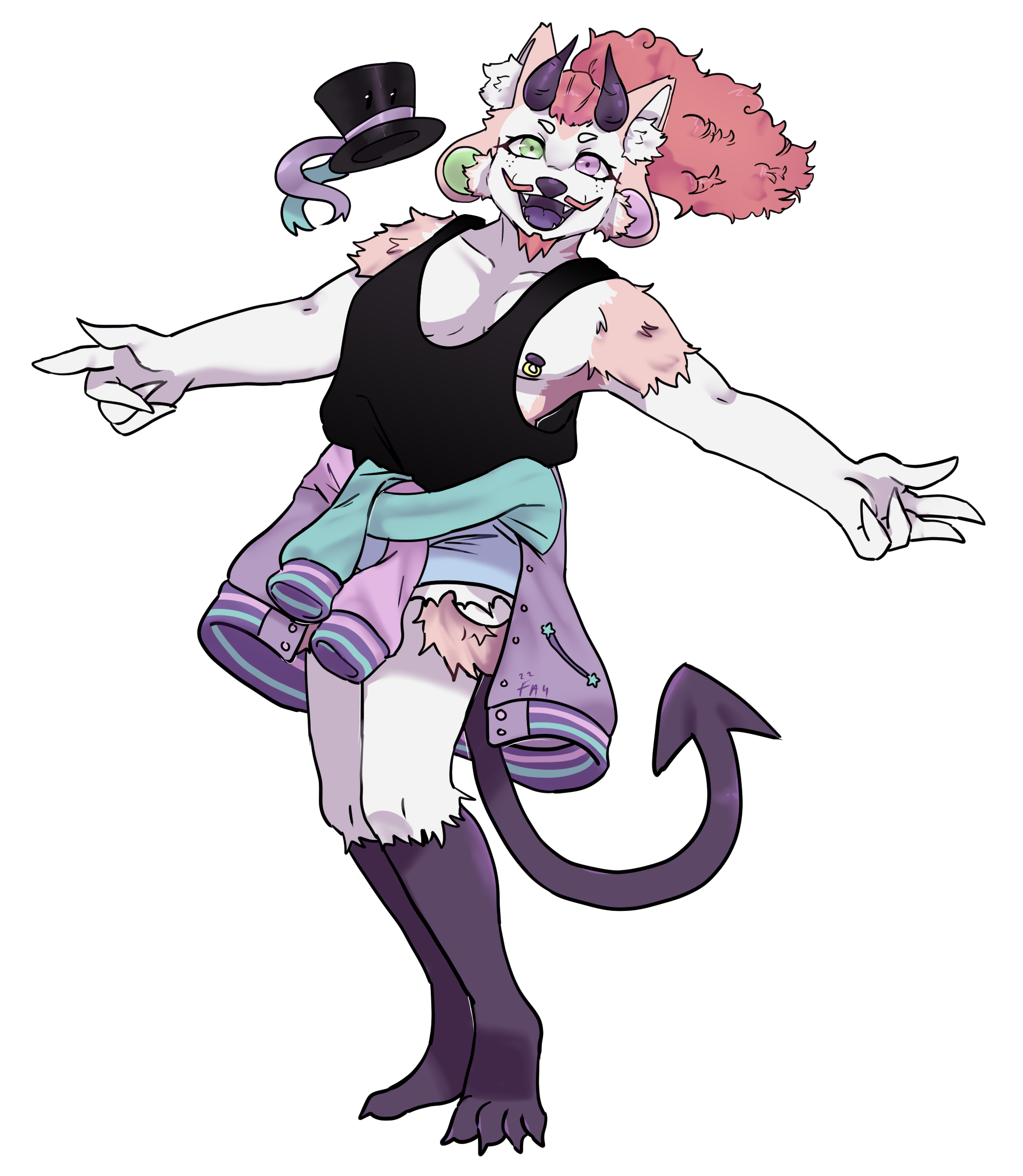 Voice Type: AltoThey're clumsy and constantly getting hurt, indicated by all the stitches and band-aids. Their scarf functions like wings and/or external appendages, and typically follow arm movement by default. Their bowler hat is high-tech and is arguably sentient. Its name is Aaron.You can purchase their commercial license here: (It's shared with Leigh)